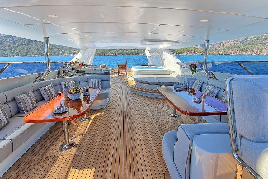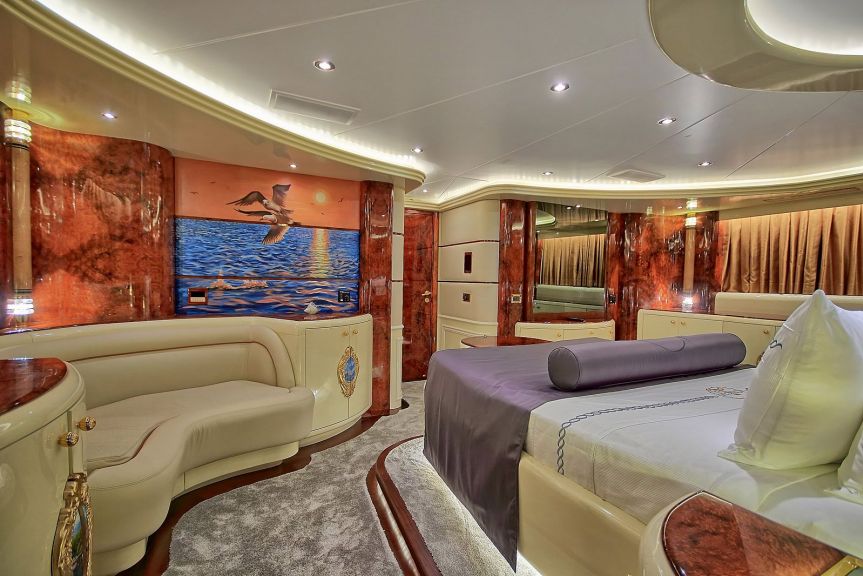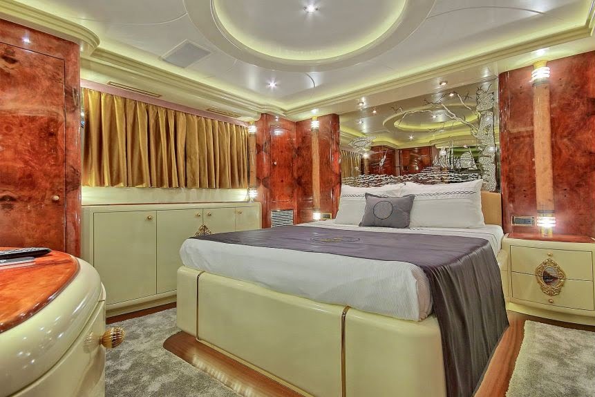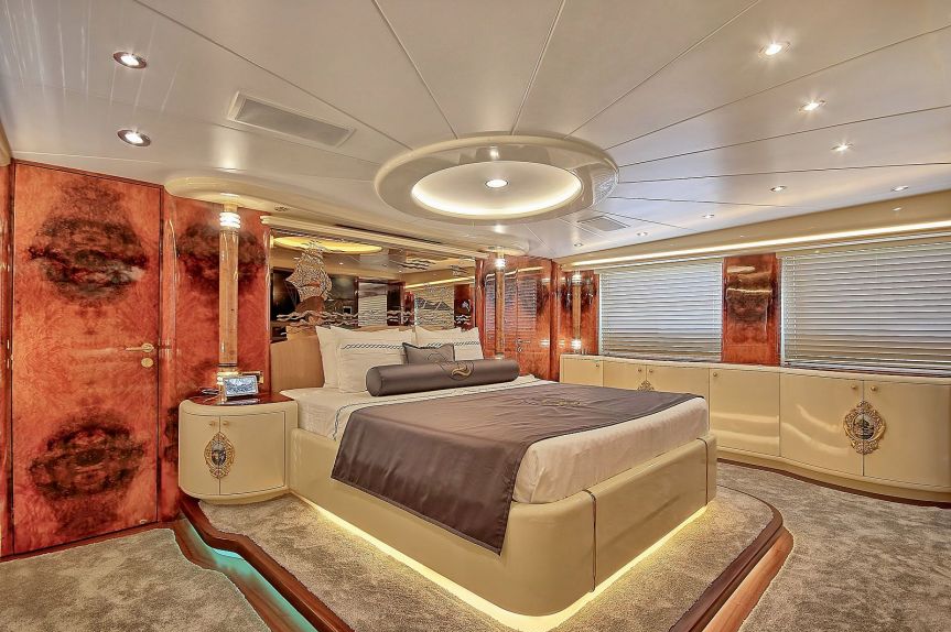 The motor yacht is moored in Bodrum. It is 43 meters long and 8.50 meters wide.