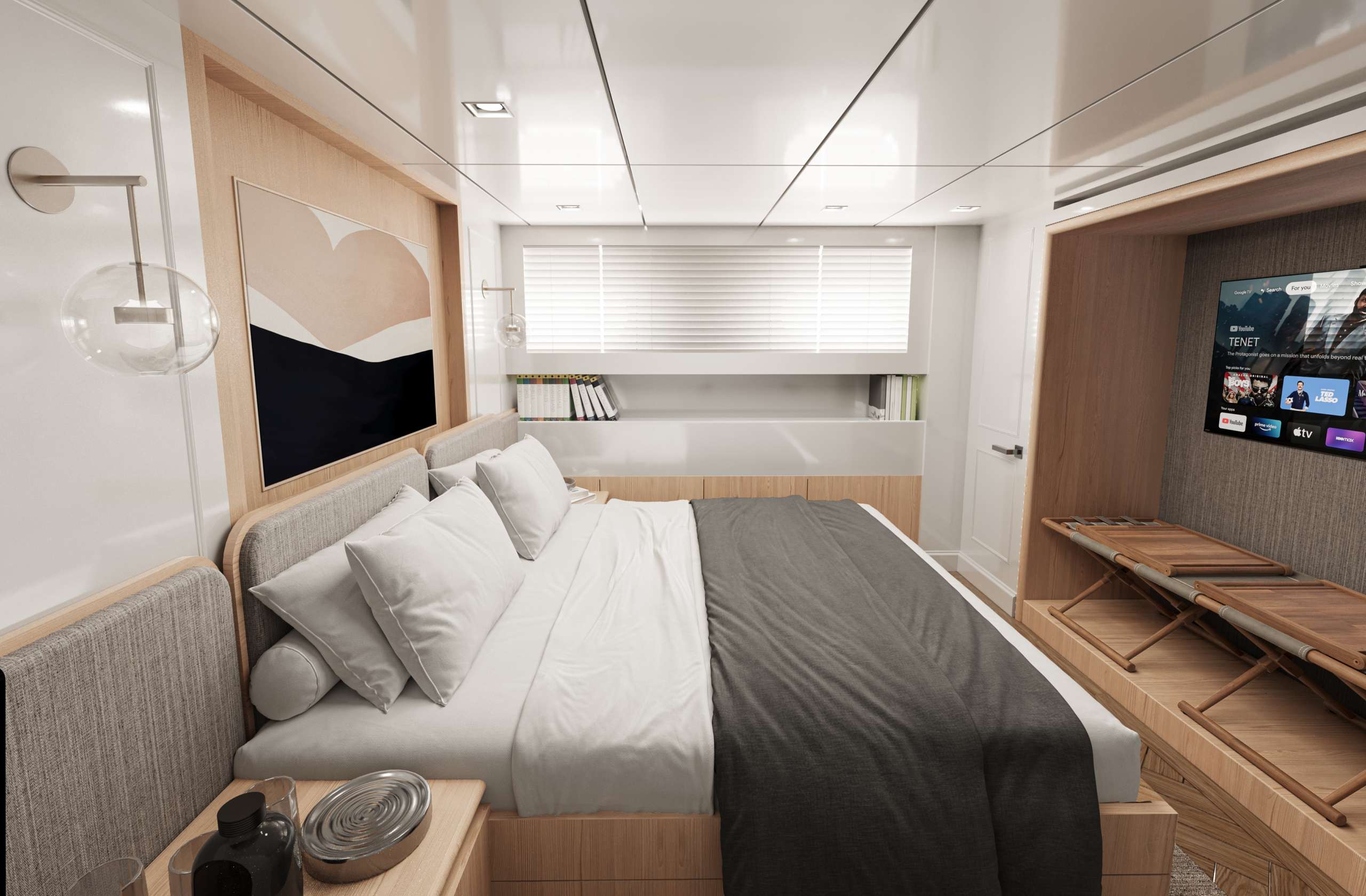 Toplam 6 kabini bulunmaktadır: 1 master, 3 double ve 2 VIP kabin. Maksimum 12 kişi kapasitelidir.